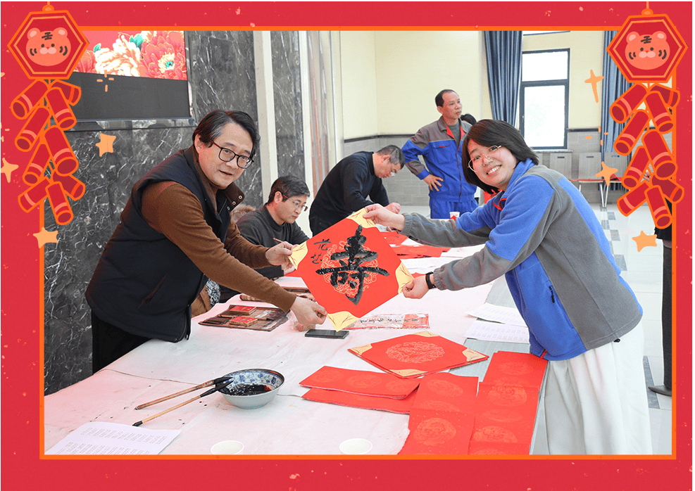 靈蛇迎歲,新元肇始。1月23日上午,九三學(xué)社湖州市委的書法家們來到永興,為公司員工送上新春的祝福。他們筆力遒勁,揮毫潑墨,筆觸間蘊含著深厚的文化底蘊與新春的吉祥氣息。現(xiàn)場氣氛活躍,書法家們根據(jù)員工的個性需求精心創(chuàng)作,員工們紛紛排隊領(lǐng)取,一幅幅獨具匠心的春聯(lián)帶著濃濃的溫情和祝福。隨著書法作品一一完成,墨香撲鼻,員工們感受到新春的喜悅和九三學(xué)社的深情厚意。這一場書法贈春的活動,不僅讓大家感受到傳統(tǒng)文化的魅力,也增添了新春佳節(jié)的喜慶氛圍。